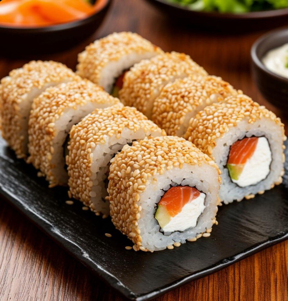 Традиционный ролл Калифорния со свежей форелью , сливочным сыром и авакадо