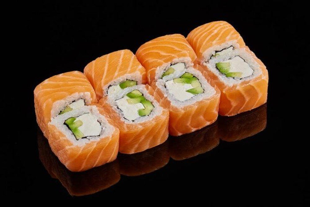 Классический ролл Филадельфия со сливочным сыром, огурец, авокадо и нежным лососем